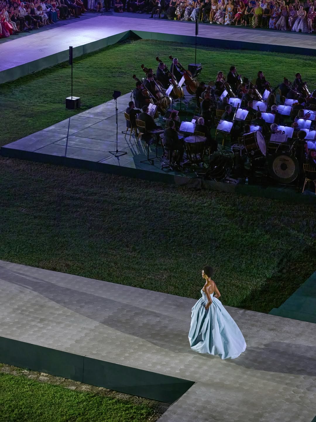 Supported layout design for the runway and coordinated seating for Oscar de la Renta’s Pre-Fall 2026 show in the Dominican Republic, celebrating the brand’s 60th anniversary.