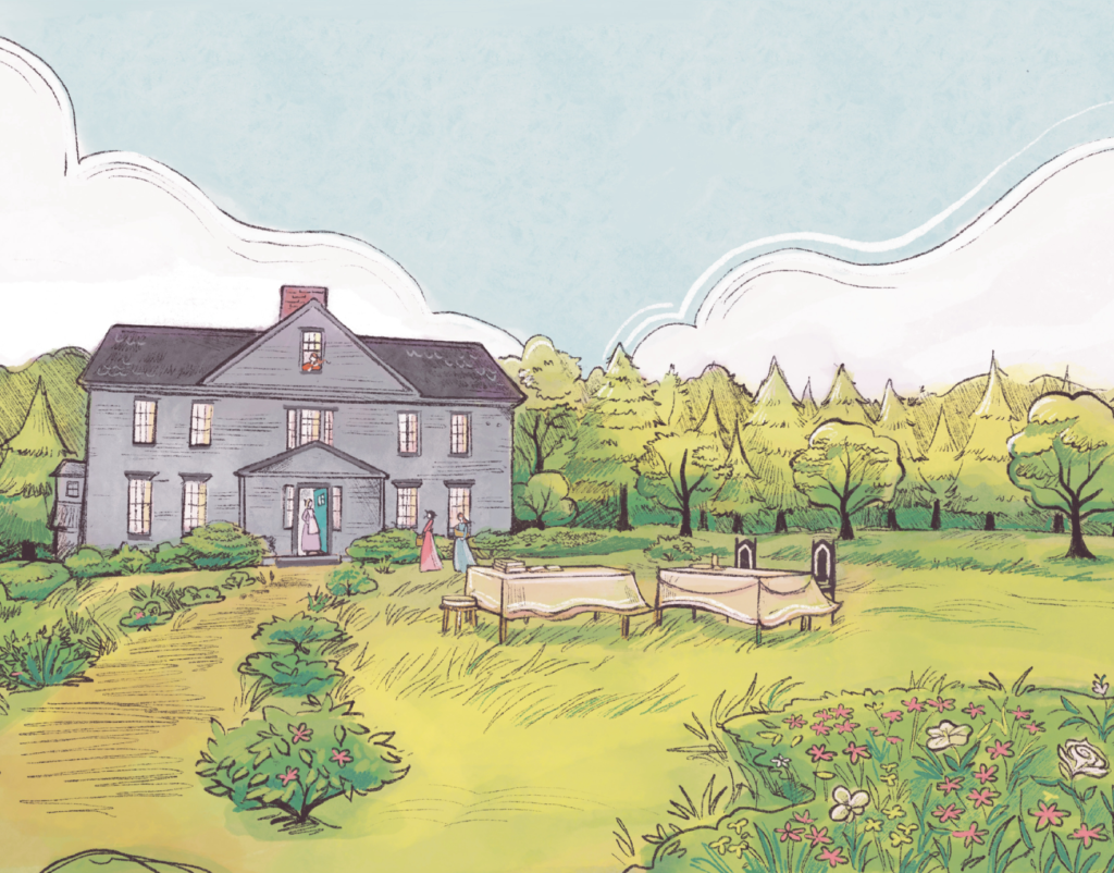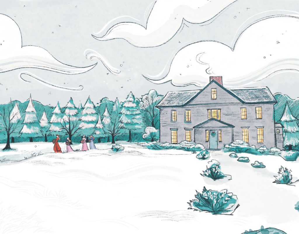 I also created an alternate version of the book by enlisting my good friend Polly Edwards to illustrate the dust cover, end pages, a two-page spread, and a page featuring four flowers symbolizing the March sisters.